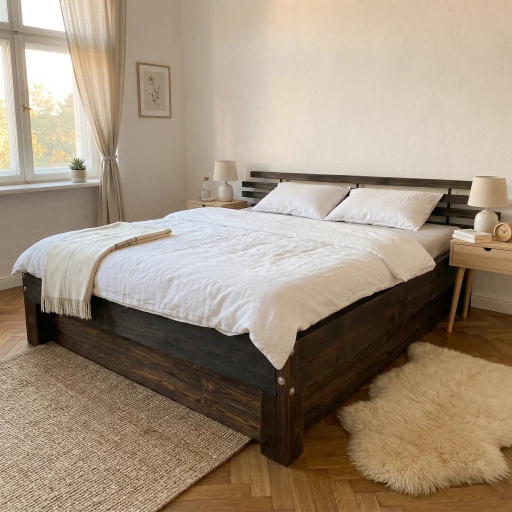 Hledáte kompletní vybavení ložnice? Podívejte se také na naši rozkládací postel z masivu pro hosty nebo postel ze starých desek s industriálním charakterem.